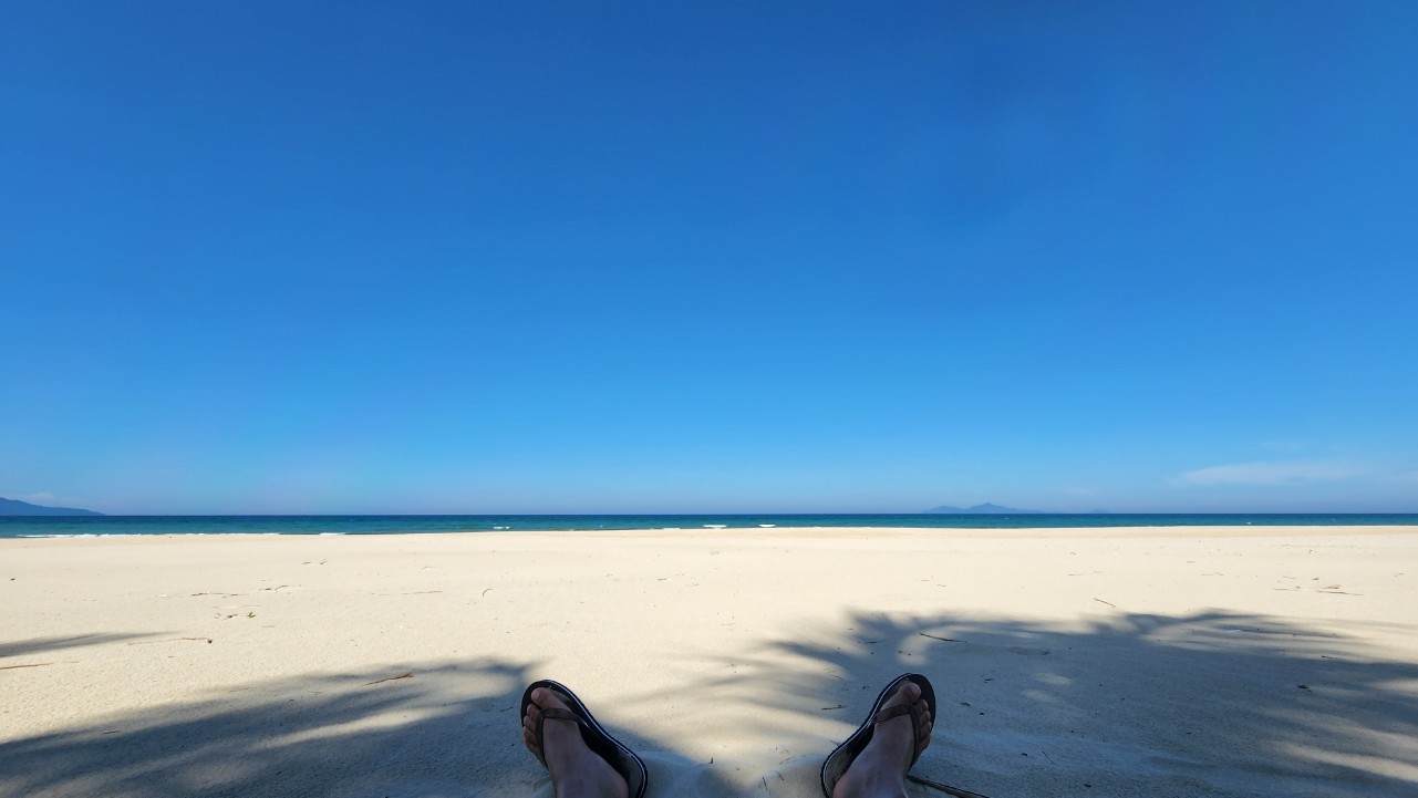 하얀 모래 위에 아주 넓고 사람이 없어