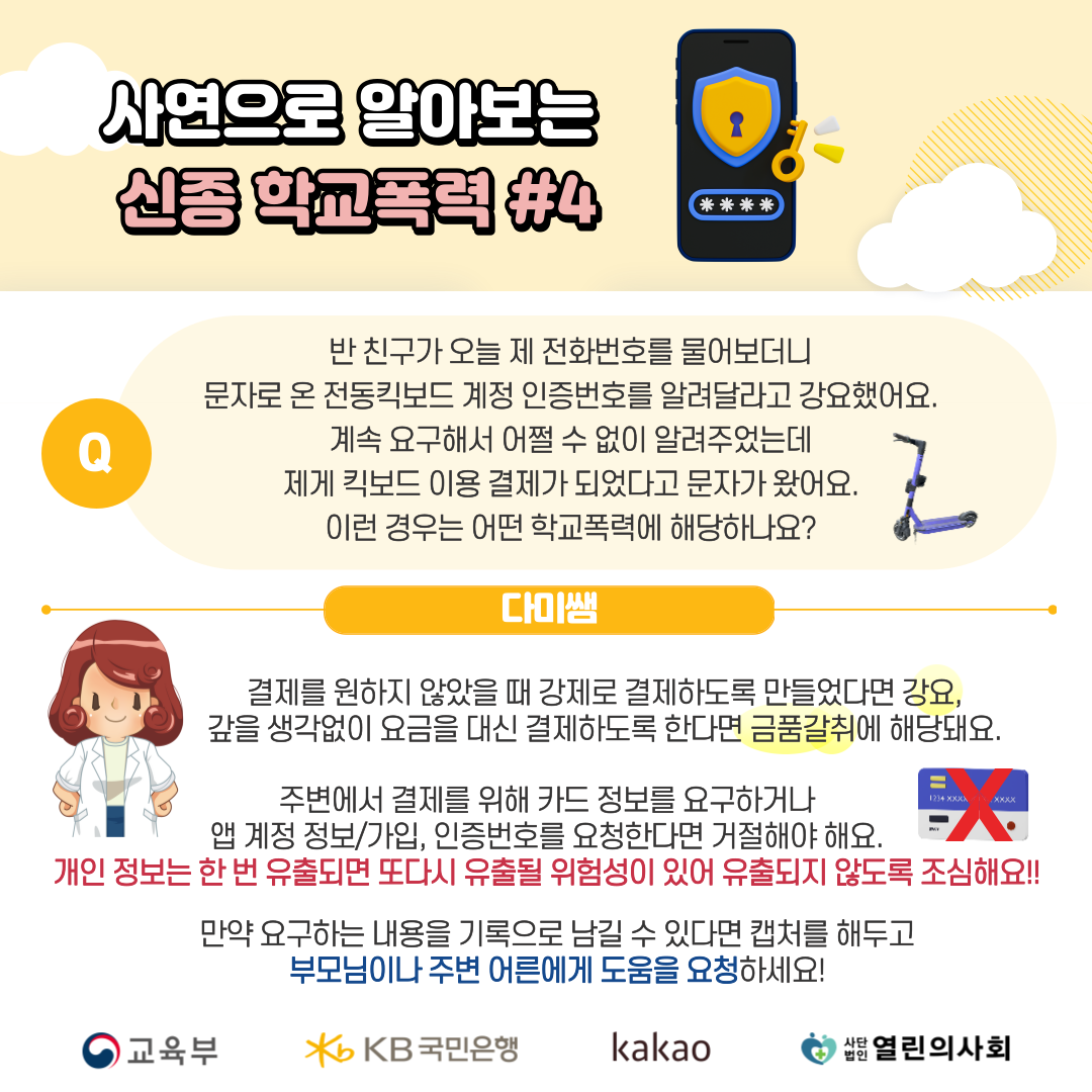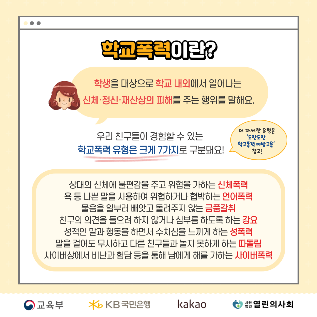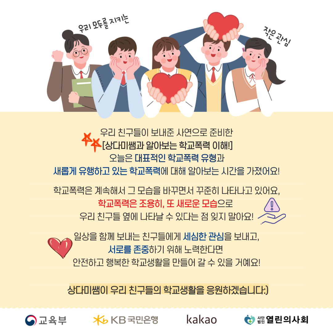 이번엔 우리 친구들의 안전하고 행복한 학교생활을 위해