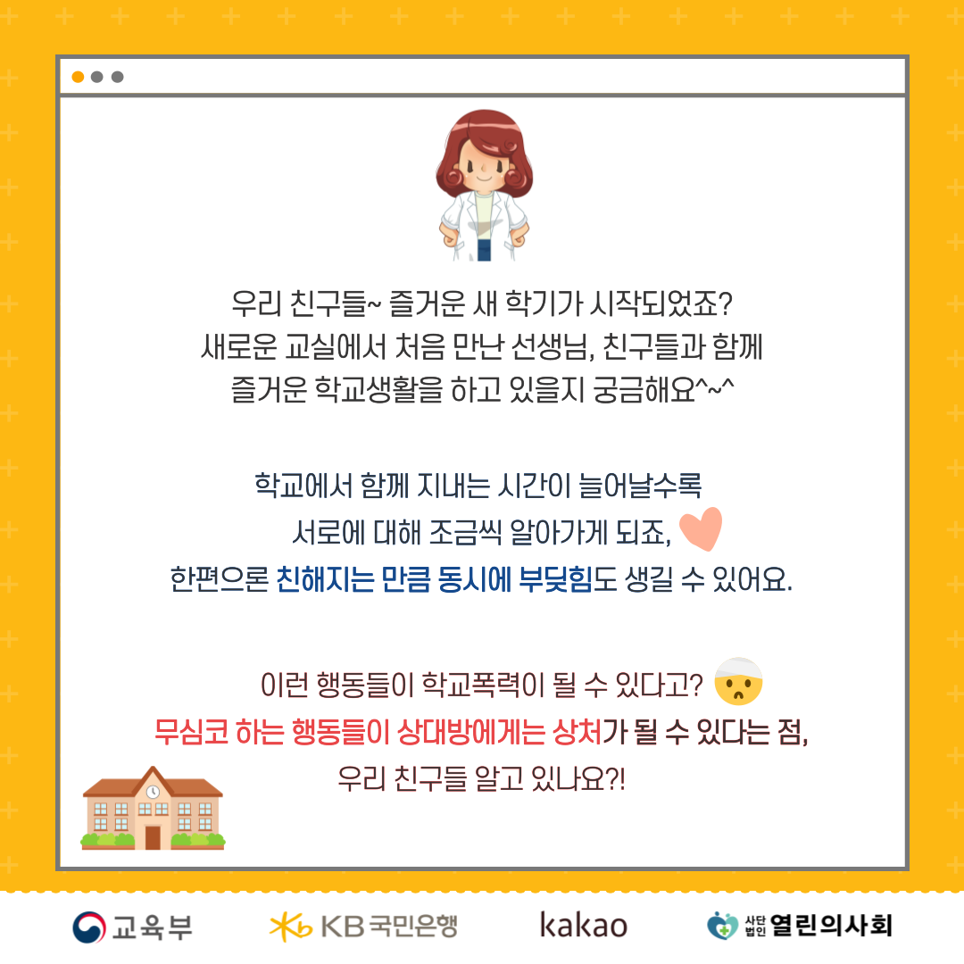 의도하지 않은 행동은 학교 폭력으로 이어질 수 있습니다!