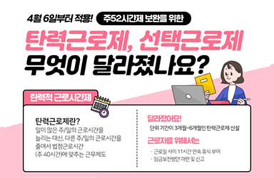 2021년 1월부터 중소기업도 시행하고 있습니다. 또한 2021년 7월부터는 5일 이상에서 50인 미만 사업체의 경우에도 적용되며 휴일근로의 경우 연장근로에 해당됩니다. 그럼 유연근무제에 대해 알아보겠습니다. 해당 제도는 통상적인 근무시간 및 근무일을 바꾸고자 하거나 근로장소까지도 선택 및 조정을 하여 업무와 생활을 조화시키면서 인재를 활용하는데 효율성을 높이기 위해 적용한 제도를 말합니다. 이러한 제도는 빠르게 변화하고 있는 시대에서 비약적으로 발전한 스마트 기기를 통해 굳이 사업체에 출근하지 않고도 일을 수행할 수 있는 현재 많이 시행되고 있는 제도였습니다.