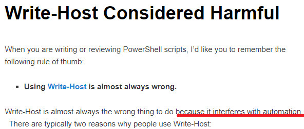 PowerShell 개발자 Jeffrey Snover는 Write-Host 사용에 반대합니다.