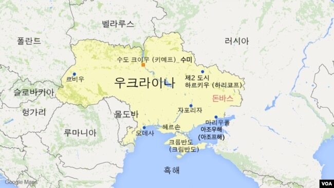 우크라이나의 주요 도시 및 러시아와 같은 인접 국가
