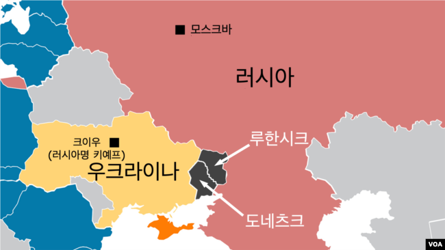 우크라이나 동부 Donbass 지역의 Luhansk 및 Donetsk Oblasts