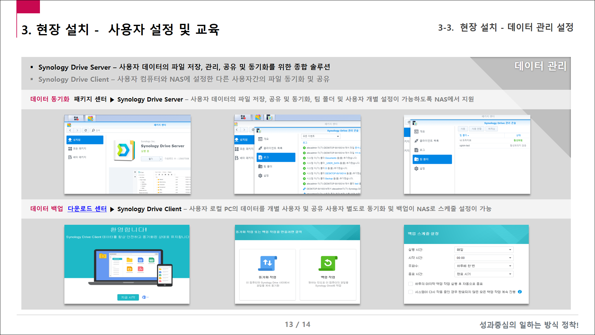 - 고객 사전 인터뷰에 따른 사용자 설정 및 교육